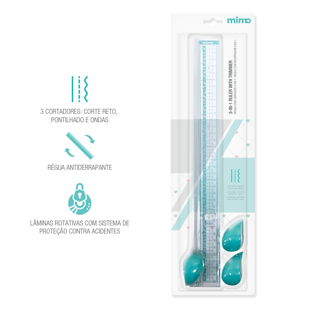Por ela ser antiderrapante e ter 3 cortadores, faz cortes retos, pontilhados e em ondas. Como essa régua possui marcações em centímetros e em polegadas, horizontais e verticais o que facilitam muito na hora de usá-la.