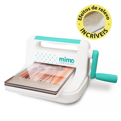 O passo seguinte é girar a manivela de modo que o conjunto de placas passe por completo sob o eixo central. Pronto! Abra a plaquinha de embossing e veja o lindo resultado.