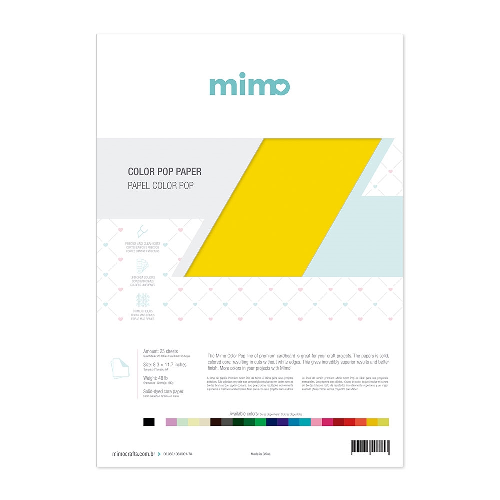 Para esse tipo de trabalho, os papeis Color Pop são super indicados. Isso porque você tem 22 opções de cores, e todas elas têm a massa colorida, o que significa que por dentro ele também é colorido, e quando você cortar não vai ficar com o miolo branco aparecendo.